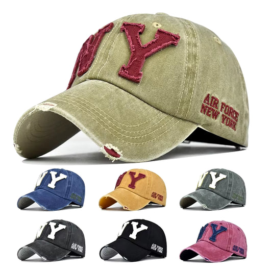 Casquette coréenne en denim usé avec lettres – Mode printemps/automne pour hommes et femmes, style vintage, casquette de baseball, chapeau soleil