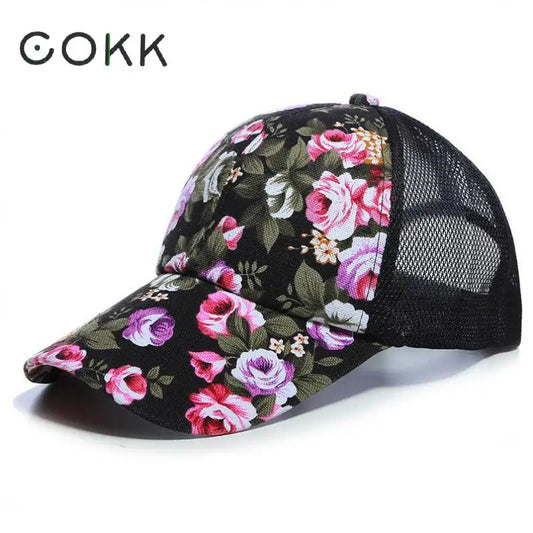 Casquette en mesh à fleurs pour femme – Casquette de baseball d’été, snapback ajustable, sport, extérieur, casual, protection solaire